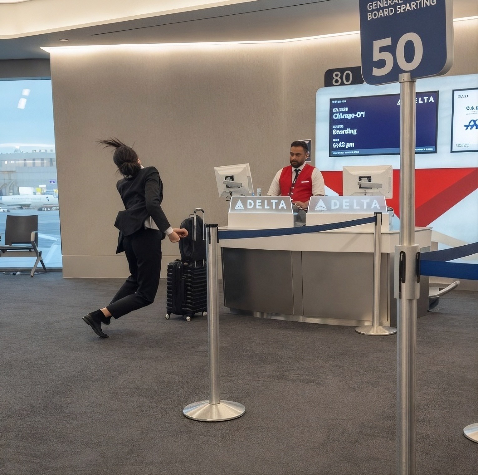 Тривожне відео, зняте біля виходу на посадку авіакомпанії Delta Air Lines, стало вірусним: на ньому зафіксовано пасажира у стані важкого емоційного чи психологічного зриву. На кадрах, які, зважаючи на все, були зняті в аеропорту Нью-Йорка Ла-Гуардія (ймовірно, Термінал C, вихід 80), жінка завдає собі пошкодження на очах у натовпу мандрівників і співробітників авіакомпанії.